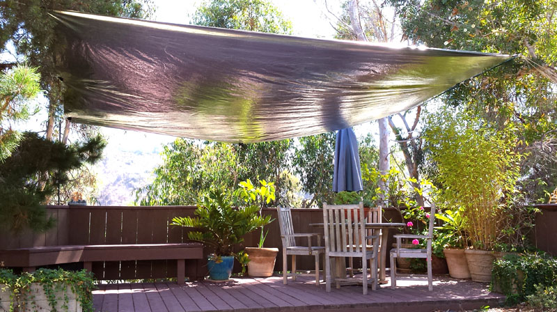 Reduce high temperature summer solar heat gain on roofs, walls, cars, boats or tents with either of our two Reflective CoolTarps-- the coolest solar tarps made. Both keep interior spaces much cooler by reducing solar heat absorption on the surface. Lightweight SolaReflexx CoolTarp (left photo) reflects over 95%